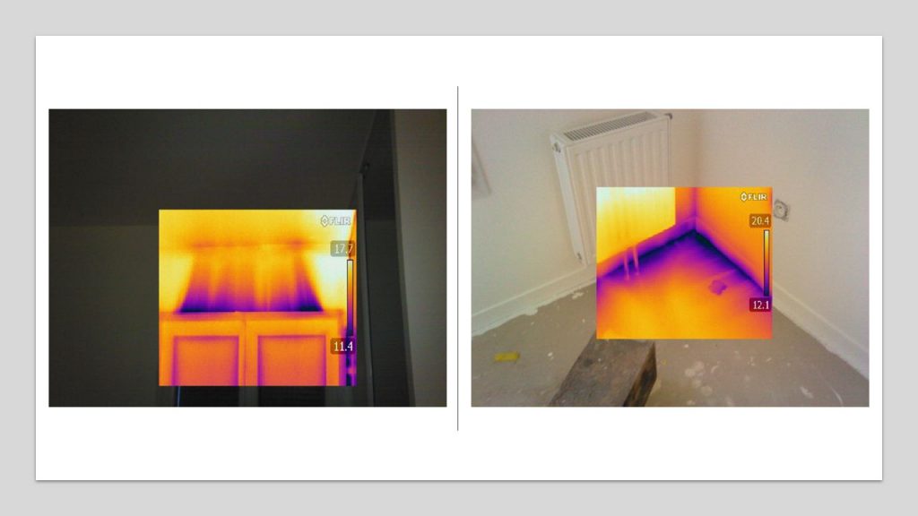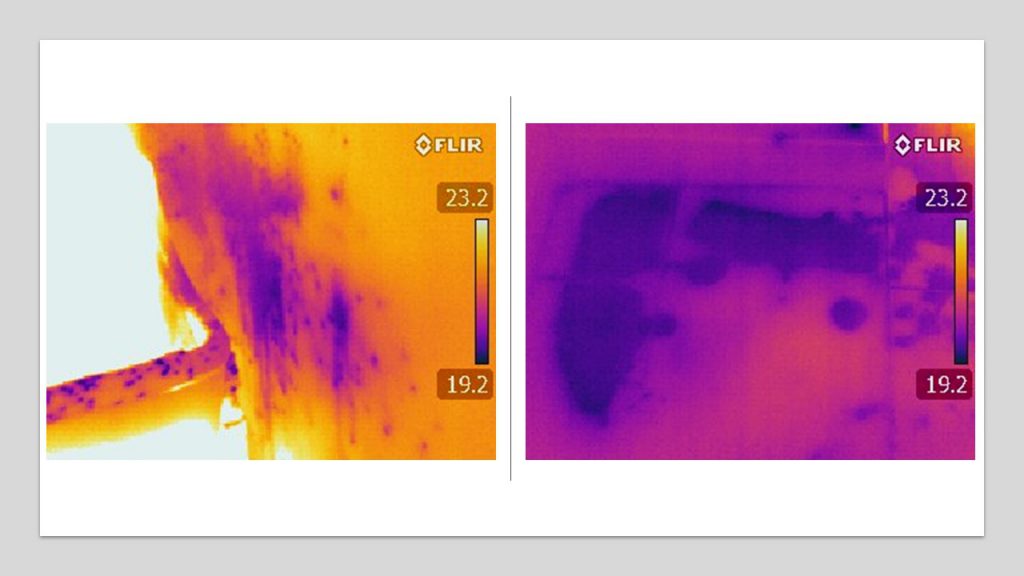 (l’eau s’évaporant absorbe beaucoup de chaleur), indiquant une zone à risque de développement de moisissures :